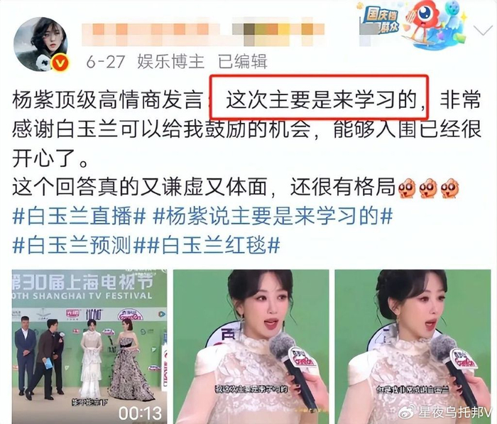 而且杨紫在现场的高情商发言也被狠狠夸赞了一番。