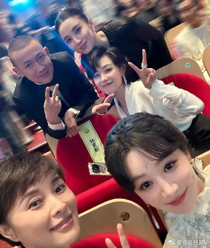 因为和刘亦菲不一样的是,杨紫不仅出席了当晚的颁奖盛典,还和一众女演员打成了一片。