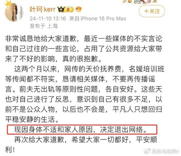 然后到了2025年的年初,叶珂产女的消息就传出来了。