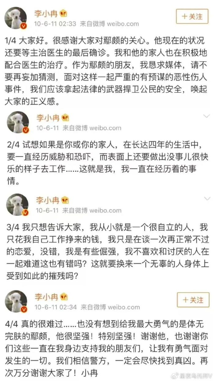 而鄢颇住院的这段时间,李小冉也一直陪伴在侧。