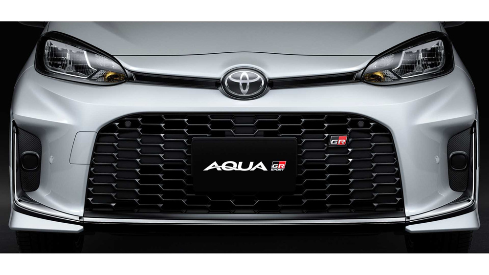 全新一代丰田Aqua于去年7月全球首发,其目前仅在日本国内销售。Aqua基于和Yaris相同的丰田TNGA-B架构打造,但其定位为紧凑型车,比Yaris高一个级别。普通版的Aqua外观看起来平平无奇,就是一台像白开水一般的家用代步车,比定位类似的两厢版卡罗拉(配置|询价)看起来还要温顺。此次新发布的Aqua GR Sport更换了全套的运动套件,外观部分更像是一台放大版的四门GR Yaris,车头新换上的矩形大尺寸前格栅极为提气,鼓起的后翼子板也是张力十足。此外,新车还增加了侧裙装饰及车位底部的蜂窝状装饰,遗憾的是车位的排气为隐藏式设计。新车配备了独有的17英寸轮圈,配套轮胎为普利司通Potenza,尺寸为205/45 R17。