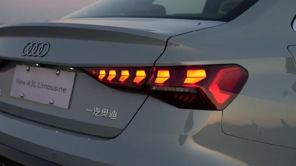 在尾部,新款A3的尾灯采用箭羽式造型,内部由148颗超红光LED组成,可呈现六种箭头形态,支持动画点亮效果。