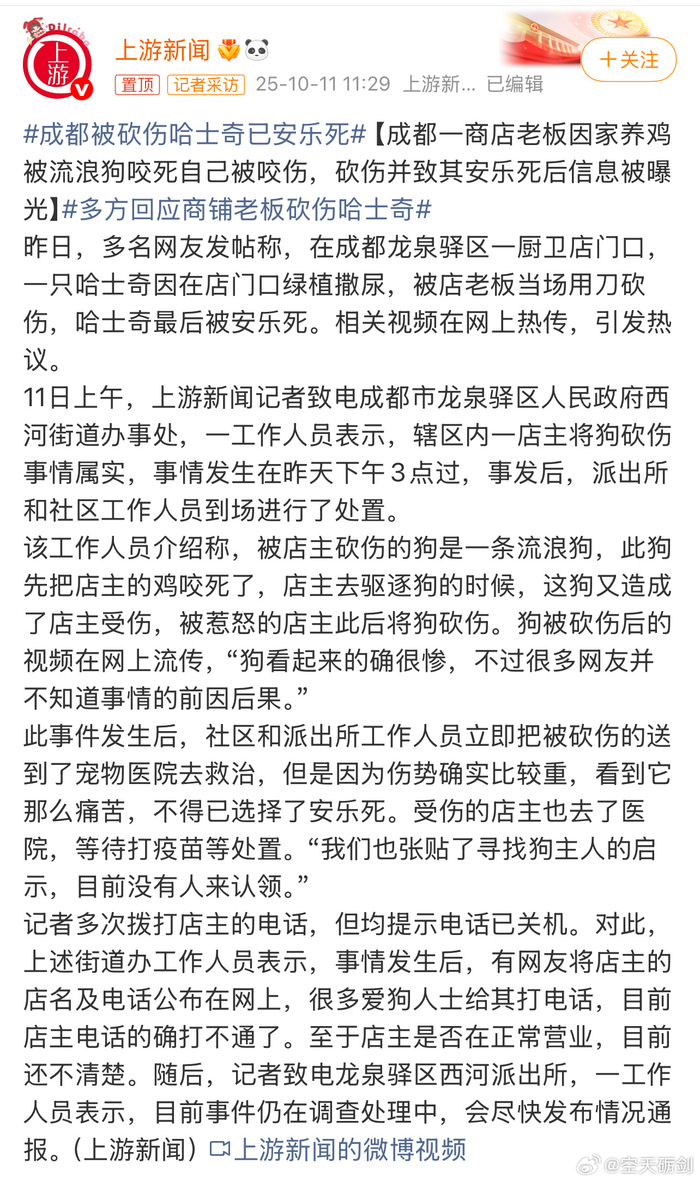 要么就干脆别养,既然选择养狗就不要半路不养了让它成为流浪狗,但凡养哈士奇的人能负点责任一直养着,也不至于出现这样的情况。