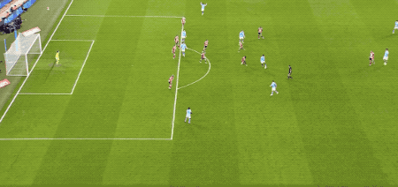 第43分钟,谢尔基的角球造成了对手的乌龙,曼城笑纳大礼。