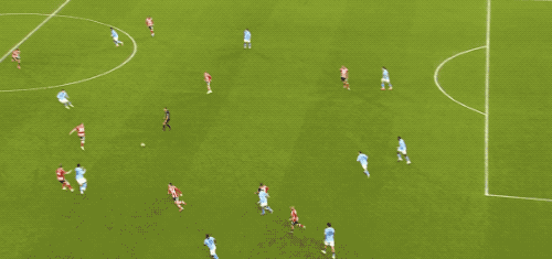 第49分钟,曼城前场连续一脚传球,塞门约送出助攻,刘易斯包抄将球打进。