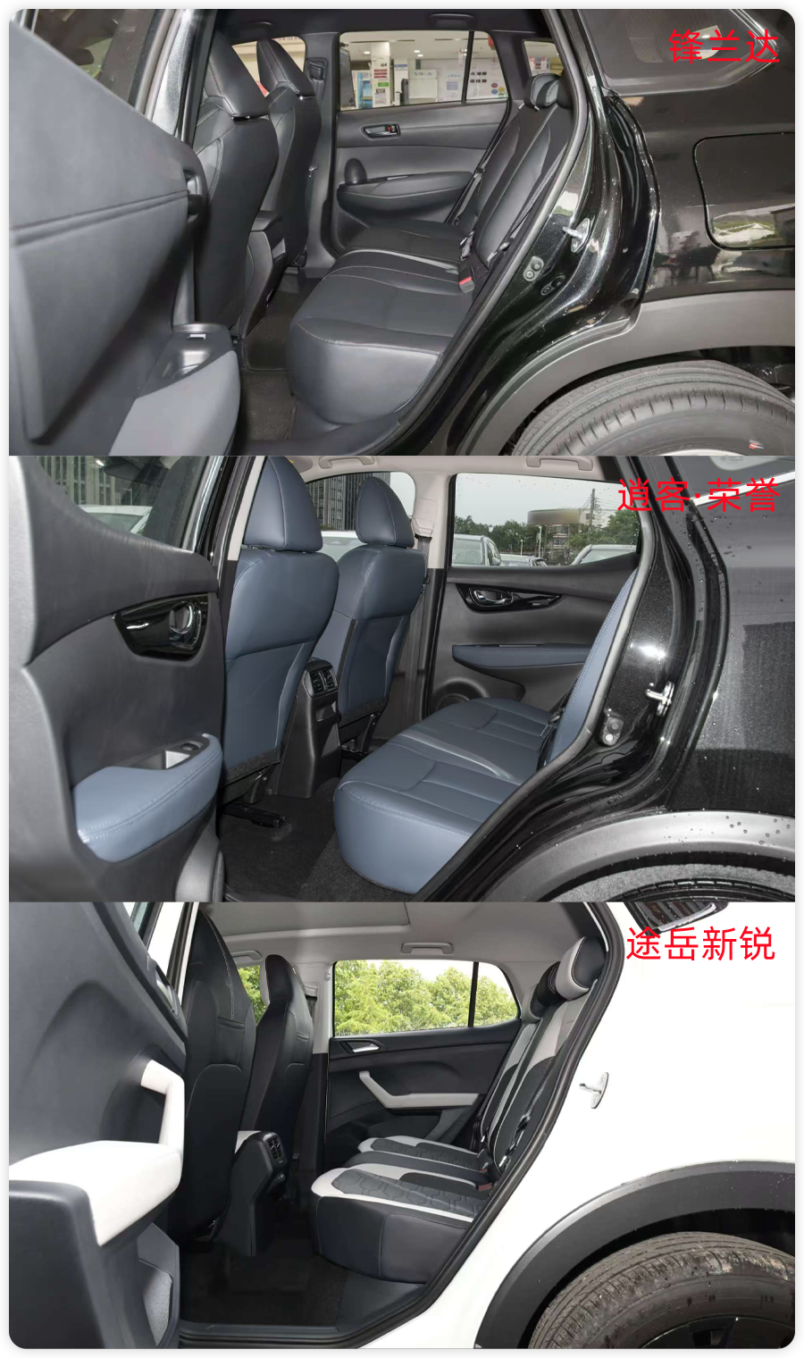 途岳新锐的长宽高都不占优势,好在轴距表现不错,达到2651mm,是三款车当中最长的,因此后排腿部空间也要比锋兰达出色一些,而且给到了后排出风口和USB/Type-C接口。不过大众车型的通病它也有,中间地台凸起较高,乘客放脚不太方便。