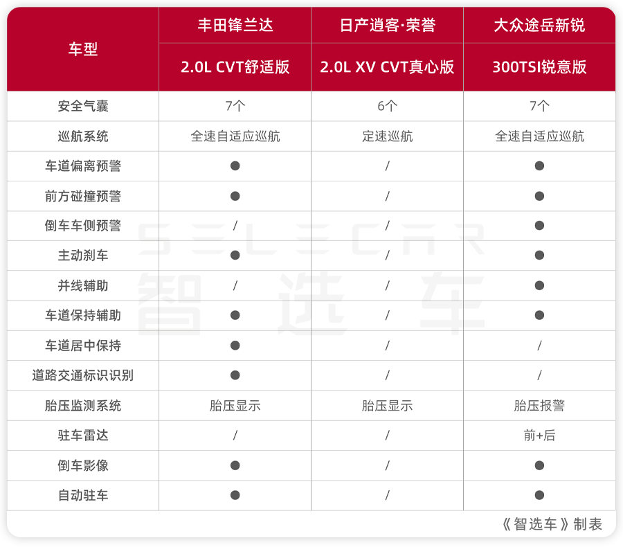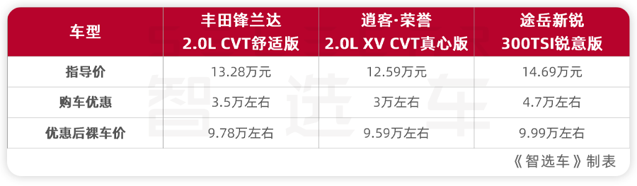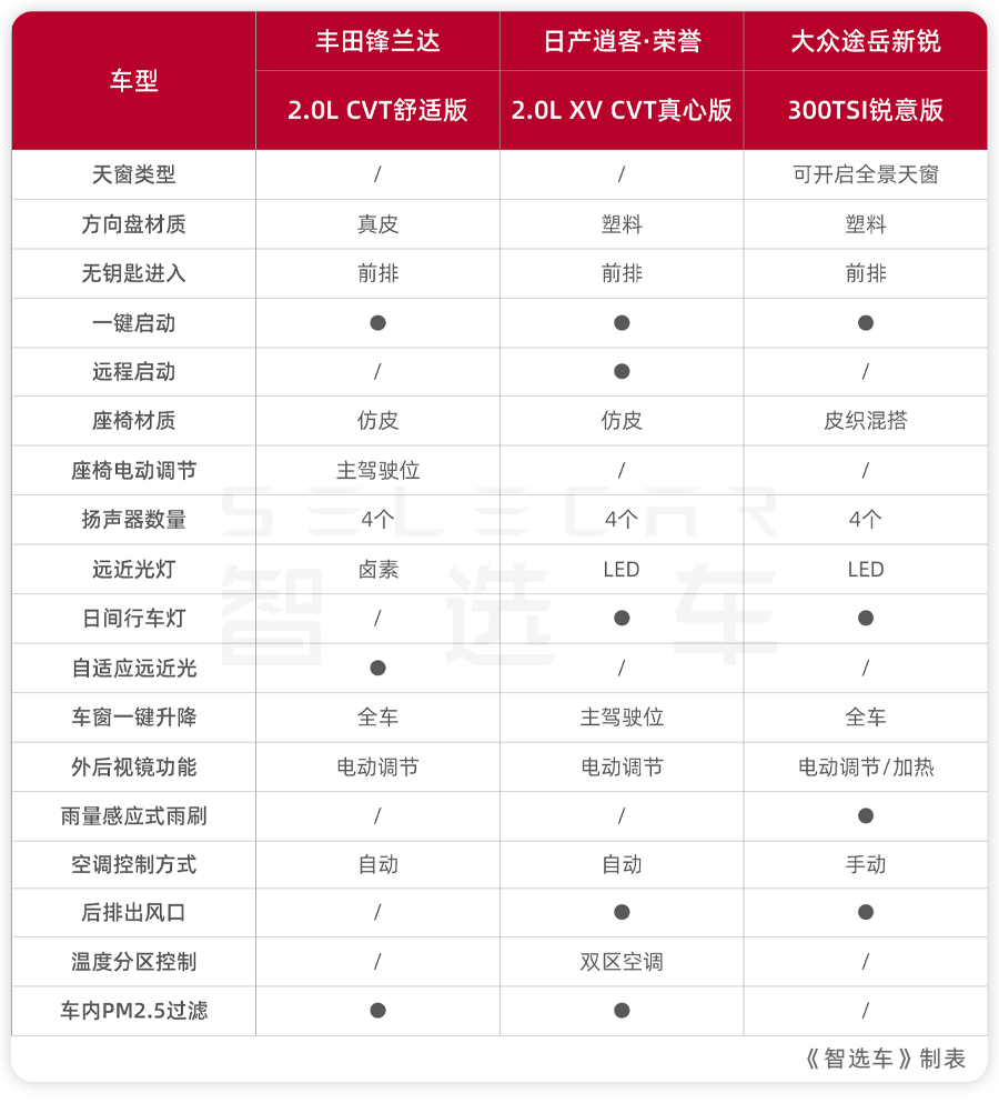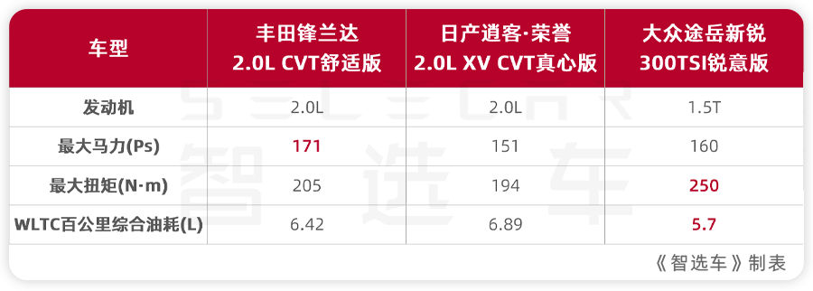 今天我们就拿2026款锋兰达2.0L CVT舒适版、2025款逍客·荣誉2.0L XV CVT真心版和2026款途岳新锐300TSI锐意版,从大家关心的价格、空间、动力、配置等方面,聊聊这三款车应该怎么选?