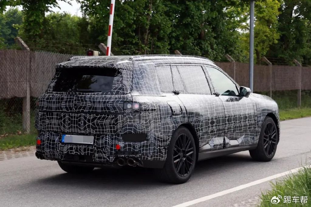 从照片上看,新X7测试车装有分体式前大灯,不过我们认为这并不是量产车的最终形态。进气格栅的尺寸并不大,与最近的趋势似乎并不相符。从车身侧面开始,测试车的设计与现款车型便非常相似了,尾部的四支排气管则暗示了它装有V8发动机。