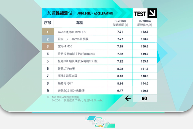 本届参赛车型主打性能,除奔驰EQS450+先锋版外,其余九款汽车所在厂商宣称其百公里加速统统均为3s级,但谁是真正的3s级,谁又能真正达到官方数据,还有待实测。搜狐汽车E电园团队测评发现,在2022年想“3s破百”所需的成本仅是原来的十分之一,28万元不到的smart #1 BRABUS版跃身榜首着实也说明了更强的性能已经随着电动浪潮来到了越来越多人的身边。此外,为了呈现各车型加速的持久能力,本届嘉年华带来全新项目0-200m加速,更全面地展现一款车的加速性能。