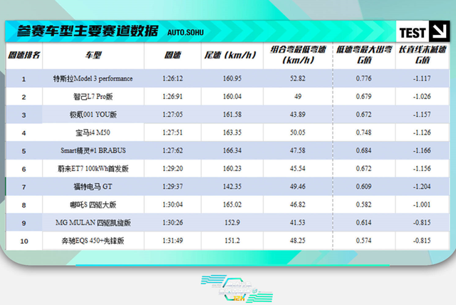 在圈速测试中,E电园团队以圈速时间、尾速、组合弯最低弯速、低速弯最大出弯G值、长直线末减速G值5项数据,全方位衡量每一台车在动力性能以及弯中的操控表现。为了保证测试结果的精确与严谨,冠军车手李嘉楠为10款车型逐一进行圈速测试,并且得出每一台车的单圈最快成绩。与此同时,为了保证每台车辆在赛道中的表现更加丰满,E电园评测团队以及媒体车手团队,在客观数据的基础上注入主观操控感受,得出最终圈速榜单。