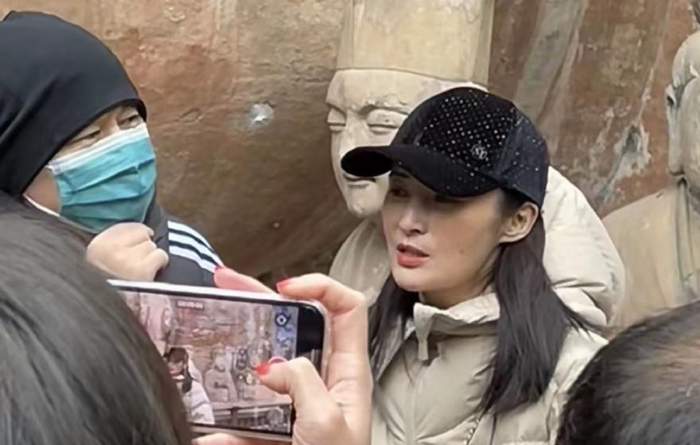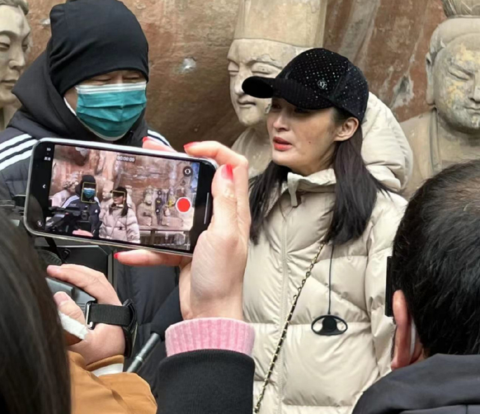 被认出后,他们夫妻还是很亲民的,站在景区让大家拍摄,有的人的手机距离很近,几乎就要怼上蒋勤勤的脸,他们的耐心也是很好了。