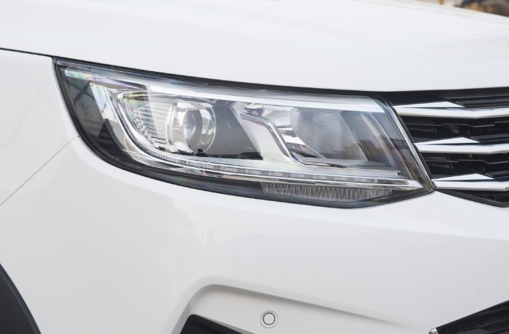 2023款风行SX6在造型设计方面并未发生变化,其中该车的前脸造型较为简约,上半部位配备扁平化的进气格栅,内部以三根横幅银色饰条作为填充,一定程度上拉升了前脸的横向视觉效果。两侧棱角分明的前大灯组采用与中网相连的设计手法,保证了前脸设计的整体性,不过灯光配置方面倒是没有太大惊喜,远近光灯皆为卤素光源,同时入门级车型不提供LED日间行车灯,大灯点亮后的视觉效果比较一般。