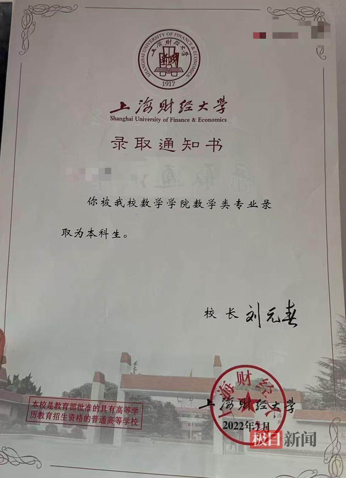 萱萱的北大录取通知书(受访者提供)做了十年证明题的萱萱,现在想要剥离出来