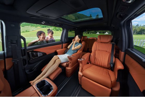 内饰同样没有进行调整,但是配置上要更加卷了,搭载ADiGO智能网联系统、7.1.4音响布置。第二排的两个航空座椅也是配置拉满,16点式按摩,并将肩部高度增加,腰部支撑提升,考虑到不少家庭的使用场景,它的前排配置也不低,16点式按摩座椅(前排坐垫可伸缩,坐垫长度达560mm)。另外,还配有一体式智慧吸顶屏。