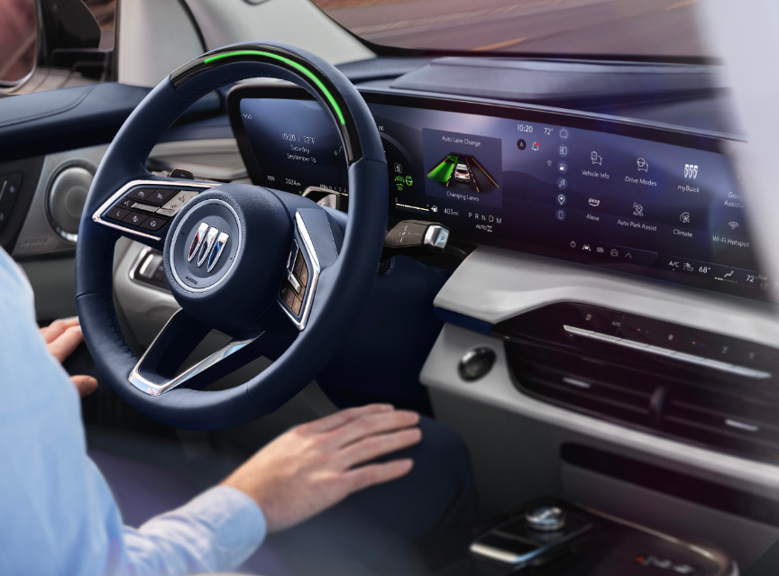 内饰方面也搭载目前别克品牌家族式的设计,配备30英寸一体式大联屏,支持Car Play和Android Auto手机互联,整个科技感更强,同时三辐式的多功能方向盘及空调出风口下方也保留一定的实体按键,部分常用功能也能够盲操快速调节。