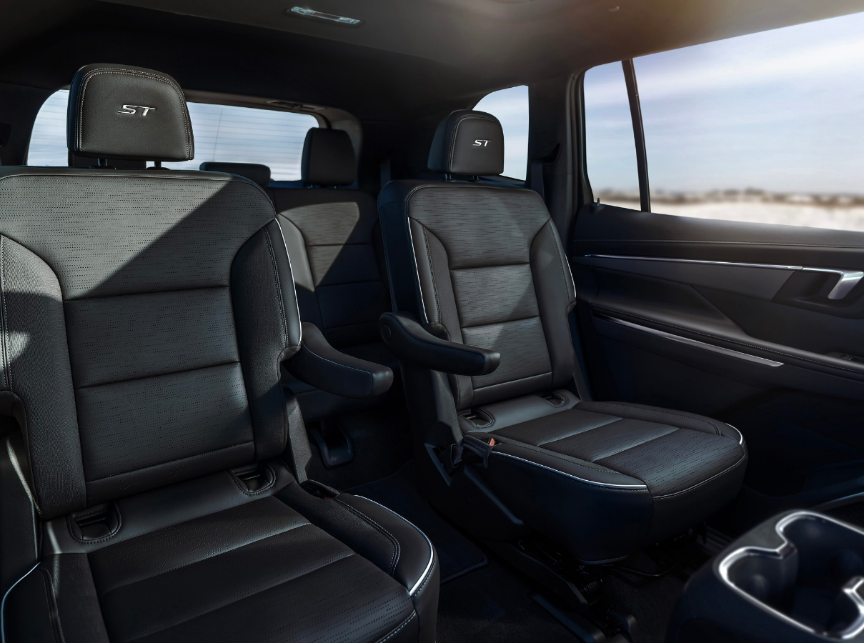 座椅布局上目前官图可以看出提供2+2+3的7座布局,提供浅色和ST版本带头枕刺绣不同的风格。