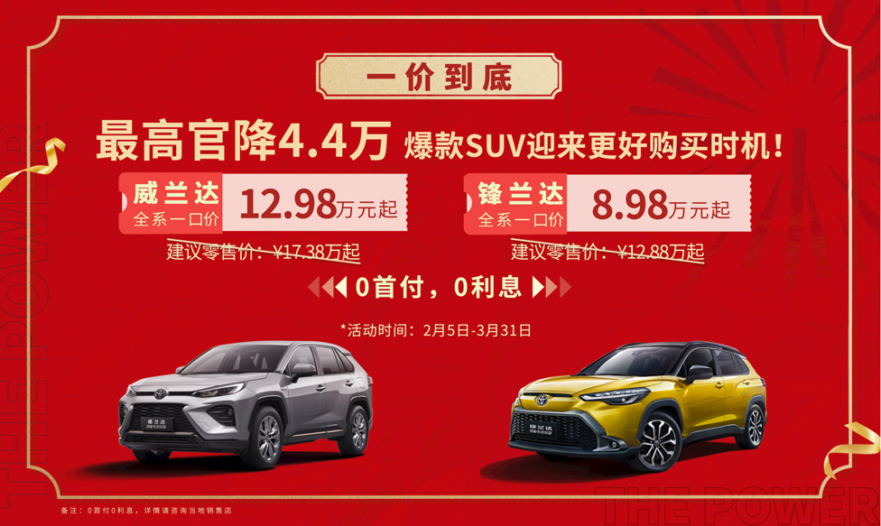 威兰达的一口价是12.98万起,优惠达到4.4万,而实际上RAV4荣放也有类似优惠,鉴于兄弟车型特点一致,所以我们本文就只以威兰达为例了。威兰达有2.0L燃油和2.5L混动两种动力选择,大家也知道双擎技术是丰田的看家本领之一,我也更推荐大家选择混动车型,百公里油耗只要5.1L。