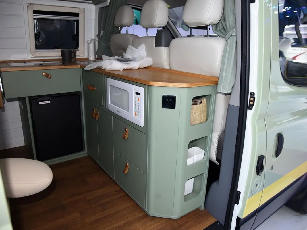 小冰箱、微波炉、电磁炉等厨电是都能提供,对于房车来说,一大优势就是可以自己做饭吃,如果是长时间的自驾游,自己做饭也是能让开销降下来的。