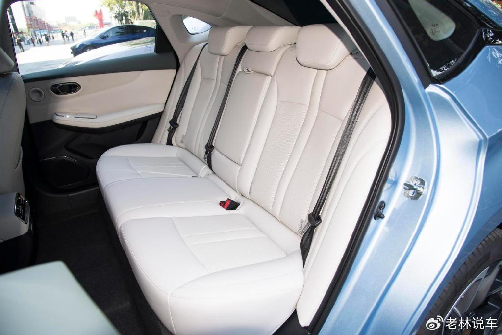 尺寸方面,该车的长宽高分别为4863毫米、1890毫米和1515毫米,轴距为2760毫米,说是A级车,实际上更接近B级车,我觉得它更应该是一辆A+级纯电轿车。这样的尺寸标准自然能够带来宽敞舒适的驾乘空间。