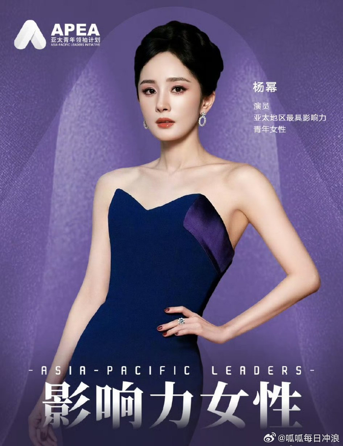 赵丽颖、杨幂 两位85top花成为2025年亚太地区最具影响力青年女性。