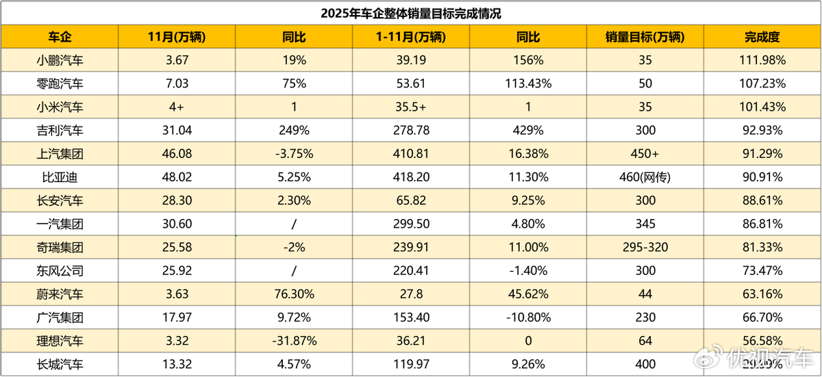 2025年还有不到20天就要落下帷幕,车企们马上就要交出期末考试成绩单了。