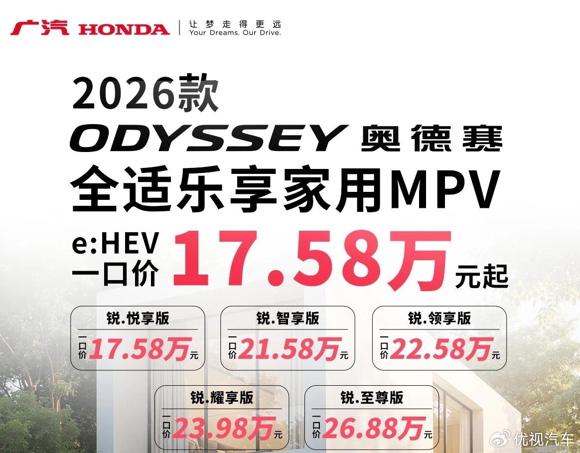 为啥呢?因为就在近日,广汽本田终于是公布了2026款奥德赛车型的一口价。宣布2026款奥德赛17.58万元起,与原本自身定价相比,相当于说是官方降价了6万元(指导价23.58万起),这你敢想吗?