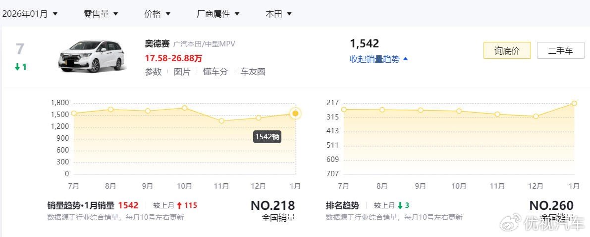 最后,总的来说,广汽本田这次对于奥德赛的价格调整,在我看来是在市场压力下展现出的务实姿态,对消费者而言肯定是好事,因为他们让大家有了更多选择。而对于2026款奥德赛,更准确的定位肯定是"稳住基本盘",至于新车能否"大卖",可否在激烈的市场中站稳脚跟,我觉得还要看最终消费者用手中的钱包作出怎样的抉择,拭目以待吧。(文/优视汽车 大卓 )