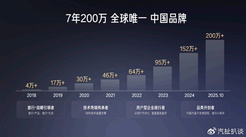 捷途的7年200万销量,是品类意识的觉醒。通过“旅行⁺”,捷途实现了方盒子车型从0到1的普及,再借由覆盖出行、服务、社交的生态系统,让更多用户深度融入其中。
