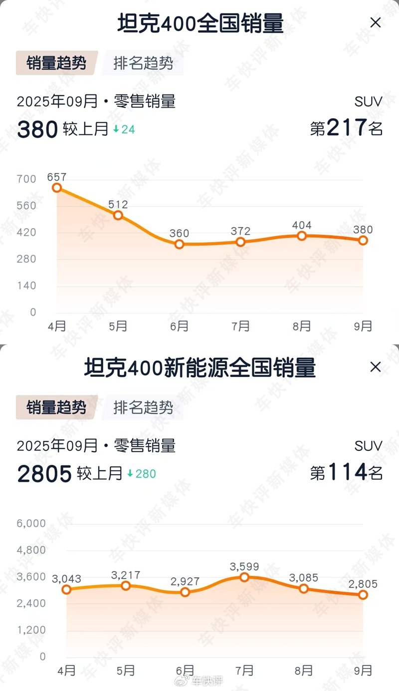 上图为最近半年坦克400燃油版和插混版车型的销量数据,那你觉得随着新款车型的上市,坦克400有没有可能在销量上反超方程豹豹5?