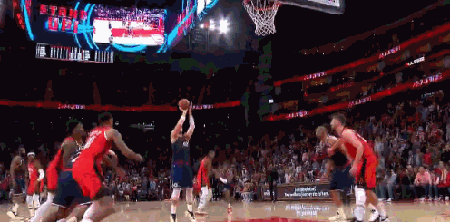 申京、阿门在快船球员的注目围观下连续点板,一下,两下,三下……