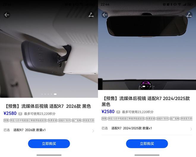 IT之家 10 月 11 日消息,智界产品总监“智界海蓝天”在微博发文,宣布智界 R7(配置|询价) 适用的流媒体后视镜开启预售,适配 2024/2025/2026 款车型(IT之家注:2026 款、2024/2025 款分开上架),定价均为 2580 元,最多可使用 23220 积分,将在 10 月中旬前按照订单顺序陆续发货,同时免费安装,享受官方质保。