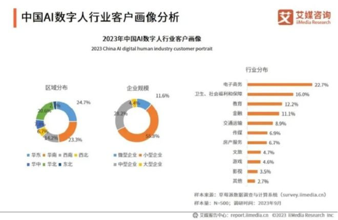 AI带货可能会让商家降本增效,毕竟可以砍掉真人主播的人力成本、能够24小时不间断直播。据艾媒咨询调研数据显示:仅2023年9月,在对500家数字人行业客户的调研中,电商类占比高达22.7%。