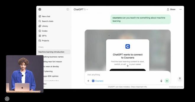 在演示中,OpenAI 高管使用 Codex,在未编写一行代码的情况下控制了会场的灯光和摄像头,还演示了如何通过语音功能与 ChatGPT 交互。