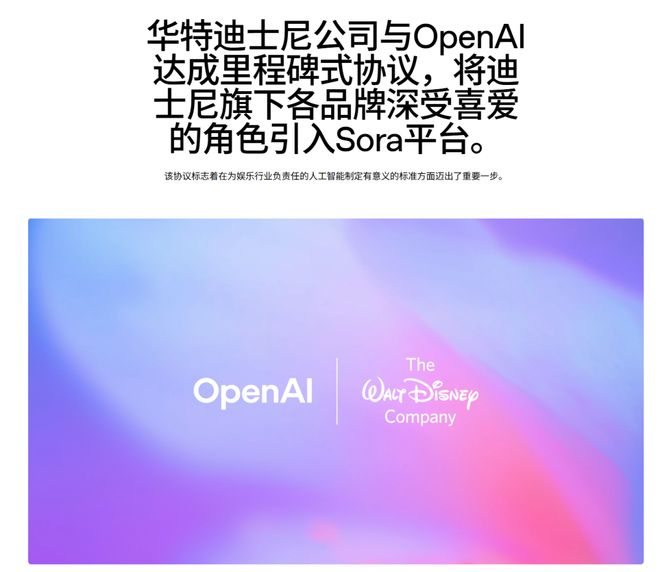 大家好,关注一则迪士尼跟OpenAI的消息。