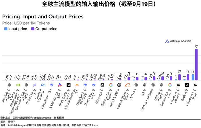 更重要的是,Qwen3和DeepSeek-V3.1在和OpenAI、Anthropic等全球领先模型性能接近的同时,还拥有一定的价格优势。