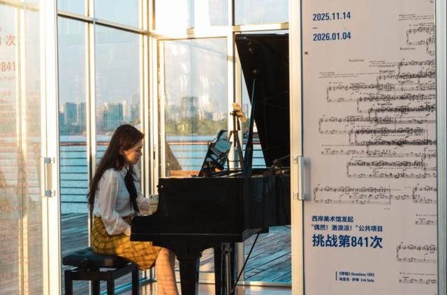 西岸美术馆工作人员介绍说,自11月14日下午活动启动以来,已有众多音乐人及公众陆续参与,除了周一闭馆,每天都有人会来参与挑战。其中有不少家长带着小朋友来弹奏。活动将持续至2026年1月4日元旦小长假结束。每位参与弹奏《烦恼》的观众都将获得一份“弹奏证明”,凭该证明可免费观看西岸美术馆与蓬皮杜中心特展“偶然!激浪派!”。