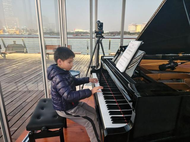 记者看到,在玻璃房附近还有好几组玩耍的亲子家庭。8岁的范颢龄在妈妈的说服下,也加入接力挑战的大军。他的妈妈告诉记者,儿子学钢琴已有两年,正好在附近玩,无意中撞见了这个行为艺术,觉得十分好奇就不妨一试。