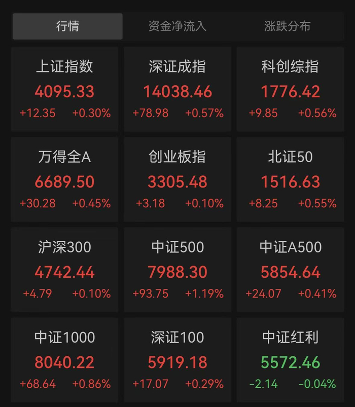 Wind截图截至午盘,沪指涨0.3%,深成指涨0.57%,创业板指涨0.1%。