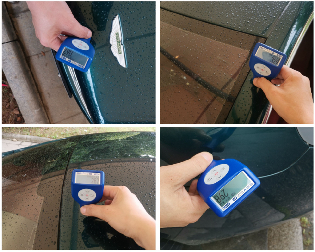 漆膜仪虽然对手工喷漆的跑车漆面没有太大参考价值,但铁头还是想给大家看一看。前机盖数值偏高,肯定是腻子修复不用说了,但是两边A柱、车顶和后翼子板差异这么明显是不是很离谱,换其他普通家用车上早就判定为喷漆了,可它是手工一下一下喷出来的,所以就是正常没毛病!外观整体看下来还不错,前保险杠更换,前中网破损,发动机盖腻子修复,右前门、右前翼子板喷漆,右前大灯更换。