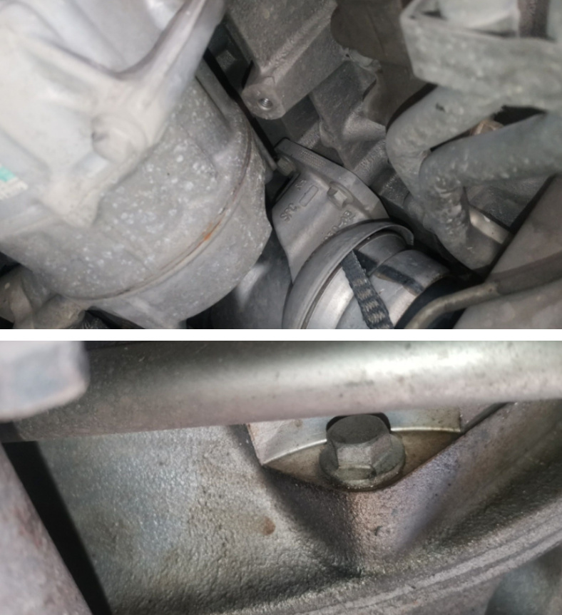 发动机从下面看没有一点渗漏,呃,这还是公里数起的作用,开个十万公里铁头我不信它不漏,最后综合各种细节可以确定发动机没有过吊装维修。