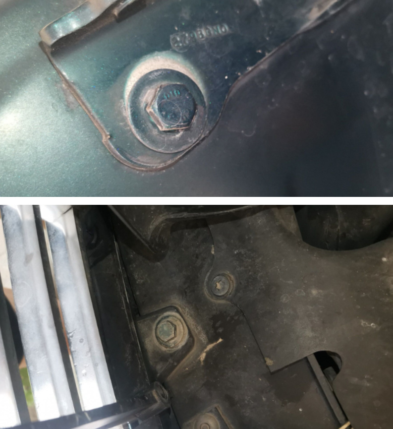 既然卖家说前面发生过碰撞,那前面的水箱框架肯定是有拆卸痕迹的。