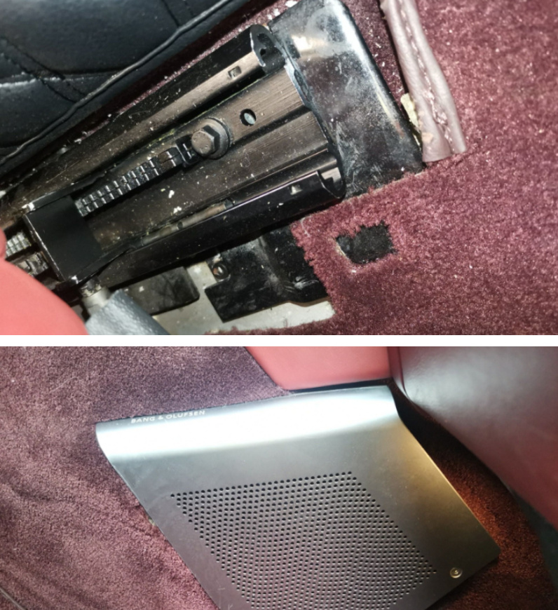 内饰方面主要就是排除水泡的可能性,于是我就把门槛和地胶扒开来看,可以看到地毯干燥清爽,下部无水渍霉斑,座椅底部滑轨清清爽爽,仪表台骨架和踏板支架等金属部件没有生锈和拆卸的情况。