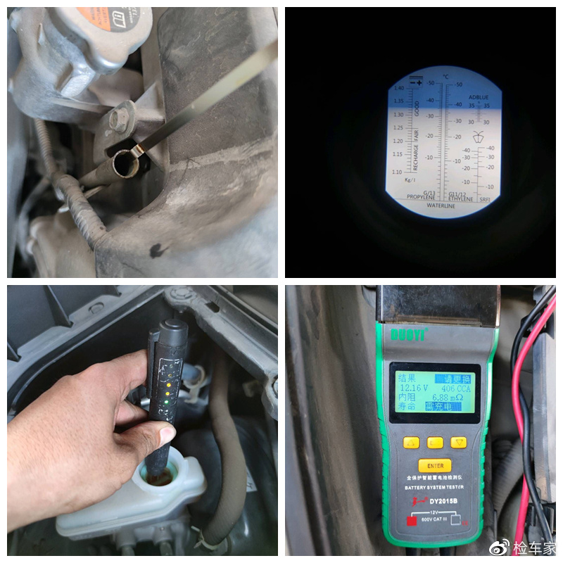 机油和防冻液都是正常的状态,观察成色也并不是很脏,没有明显的杂质!刹车油和电瓶就需要注意了,一个含水量超标,一个寿命不足,后期都需要保养维护!