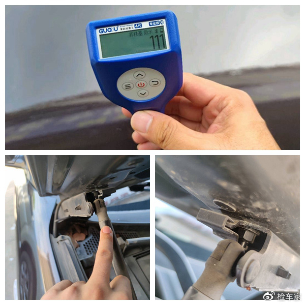 前机盖的漆面厚度维持在110μm左右的均值,符合原厂喷涂标准,四周边缘也没有毛刺!机盖铰链螺丝也不存在拧动掉漆和二次喷漆痕迹,充分说明机盖还是原厂配件,没有事故更换的嫌疑!但是液压杆有点泄压了,后期需要处理!