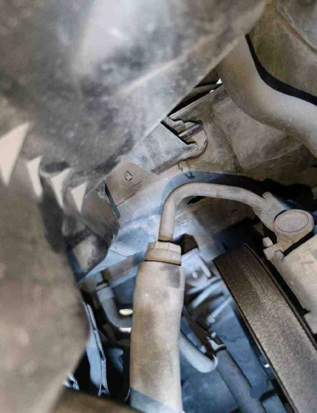 先看一下前面的水箱框架,没有发现拆卸变形的痕迹,下方的散热风扇同样是原装的,再结合前机盖的情况,足以说明车头前面并没有发生过大的碰撞!