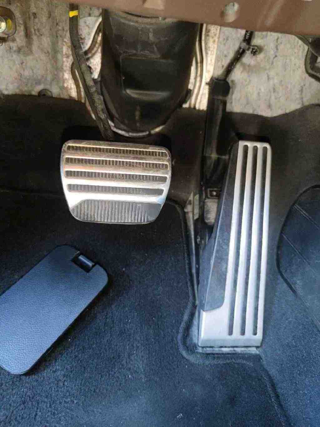 低头一看刹车踏板,右下角的磨损不小,金属部分都变色发亮了!油门踏板却并不明显!