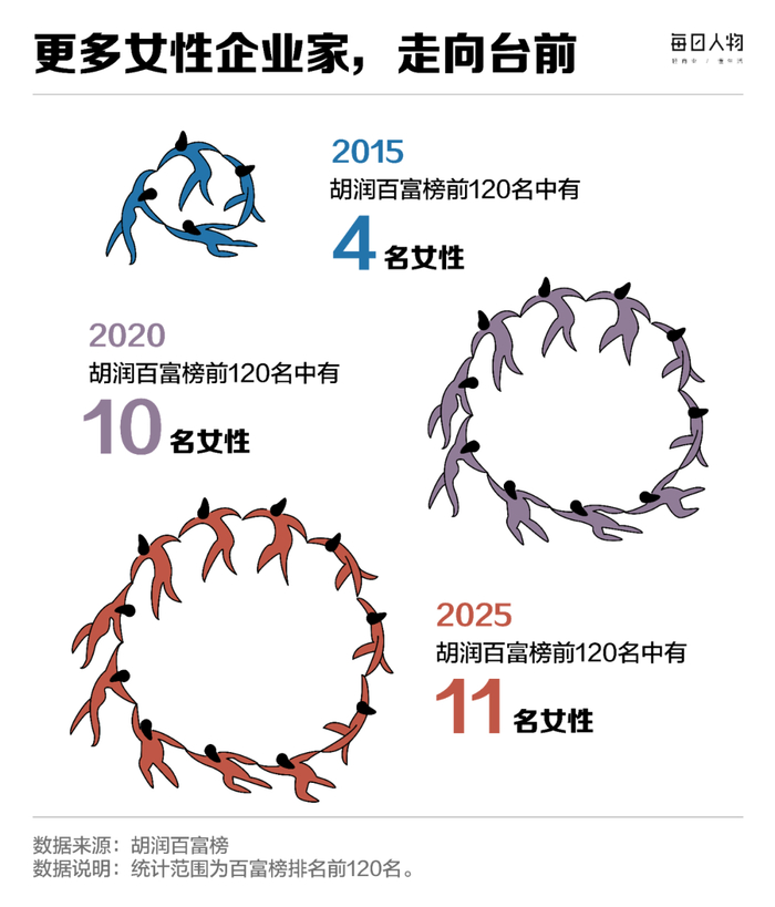 过去很长一段时间,商业世界几乎是由男性主导,如今,更多女性站到了舞台中央。登上百富榜的女企业家占总人数的22.4%,其中超过七成是创一代,白手起家。