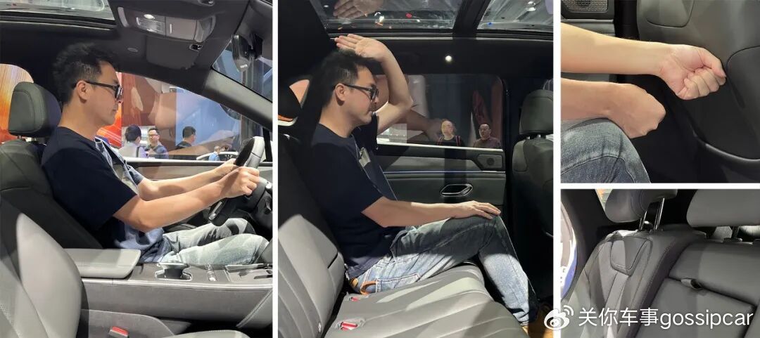 空间表现上,我1.83m的身高在车内体验,前排和后排头部空间都十分宽敞,后排腿部空间也是足够优秀。尤其乘客的脚还能进一步伸展到前排座椅底下,靠背也能够调节,从而提升长途乘坐体验。