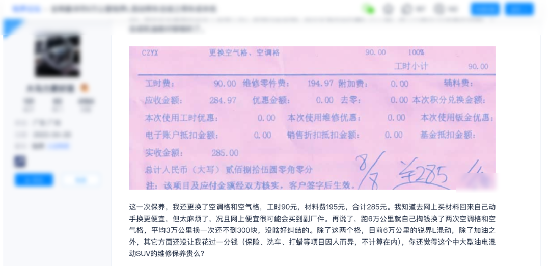 实际上,对于老用户的评价是怎样的呢?我也对此进行了一些用户调查。比如在用车费用层面,许多用户的油耗基本在7L/100km左右,还是比较低的。