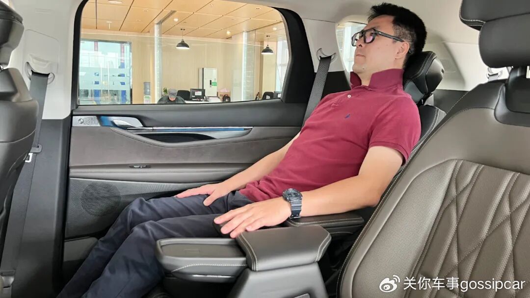 我个人喜欢2-2-3的布局,中排座椅宽大舒服,而且扶手还能收纳可腾出200mm的过道。当然,二排座椅少不了零重力模式,通风、加热功能也不在话下。第三排我试了试,也是十分宽敞,要知道我身高是1.83m。